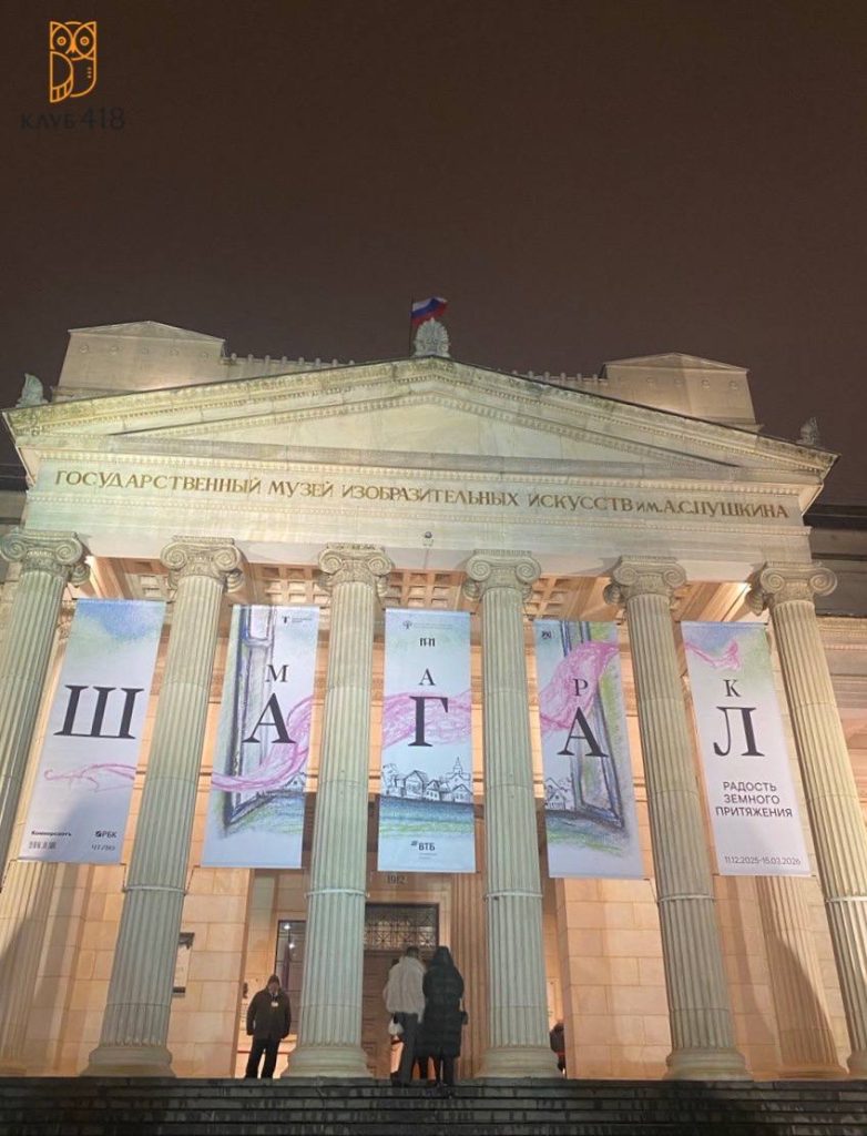 Завтра в ГМИИ им. А.С. Пушкина открывается выставка «Марк Шагал. Радость земного притяжения» — это первая за 40 лет моновыставка художника в стенах музея. Клуб «418» побывал на превью выставки и делится с вами рассказом. Основой экспозиции стали работы «русского периода», а также мотивы родины, к которым художник возвращался и в эмиграции. Многие работы сопровождаются комментарием из книга Шагала «Мой жизнь», где он подробно пишет о матери, о родственниках, живших в разных местах под Витебском (например, о дяде-парикмахере, который «мог бы работать в Париже, но был единственной звездой в Лиозно»), о виде из родного окна и о первой любви. Годы, проведенные на родине, во многом определили дальнейшее развитие ни на что не похожего стиля художника, на выставке также можно увидеть, как этот стиль переходил от наполненных бытовыми деталями работ к метафоричных аллегорическим композициям, которые мы все знаем. Также проект представляет работы, которые никогда прежде не выставлялись — ни в России, ни в мире — а также иллюстрации Шагала, сохранившиеся панно для Еврейского камерного театра и многое другое.